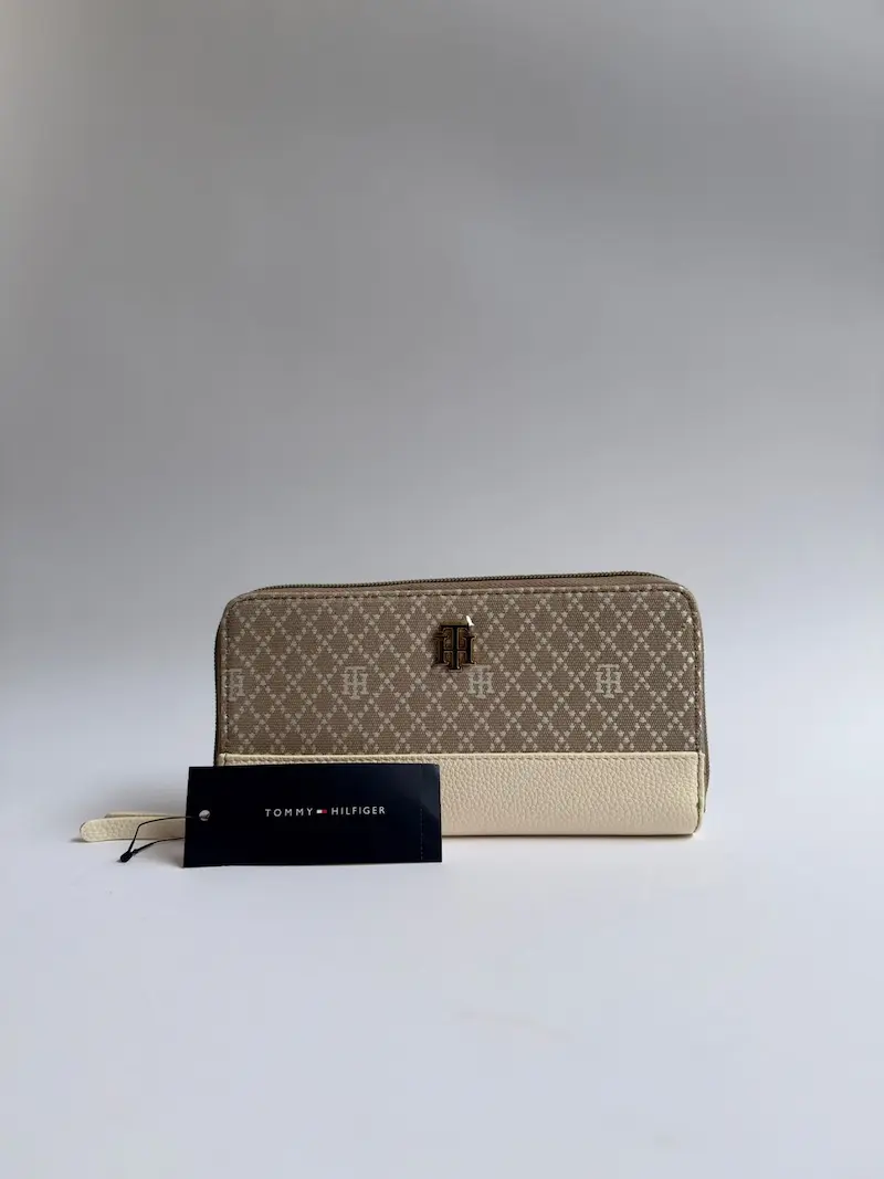 TOMMY HILFIGER BREFCASE MONOGRAM BEIGE WHIT ZIPPER